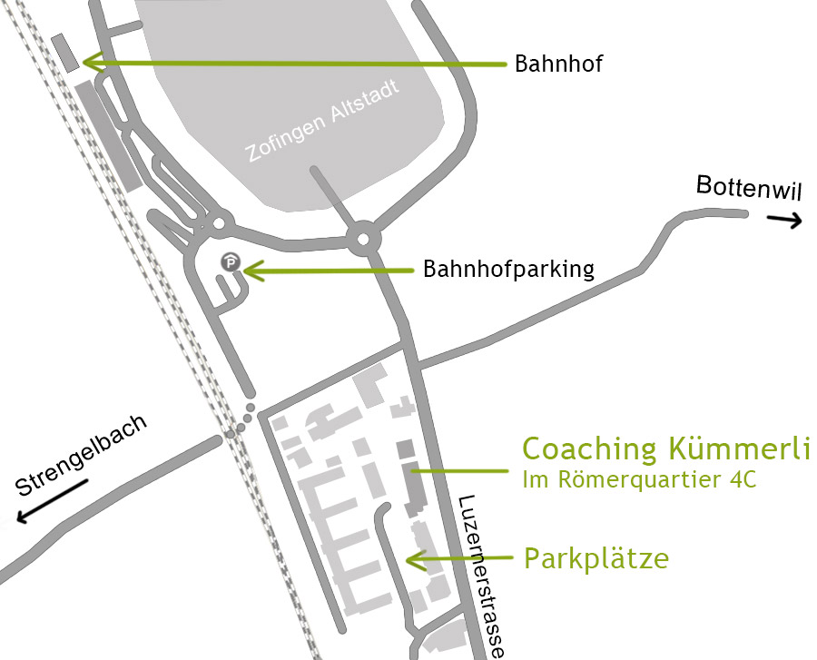 Das Büro befindet sich in der Nähe des Bahnhofs Zofingen und kann innert fünf Minuten zu Fuss erreicht werden.